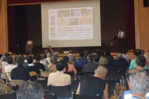 講演では、地球温暖化による気温の上昇が大雨の規模と頻度を大きくしている。地震と異なり、大雨はある程度事前に予測を立てることができることから、「想定外」の自然現象を「想定内」にするため、国や自治体で作成しているハザードマップで自分の生活圏のリスクをしっかり確認する大切さと確認方法等のお話がありました。