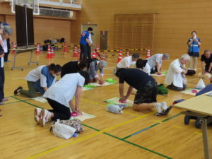 中里まちづくり協議会では、6月22日(日)に中里地区住民ほか約160人が集まり、防災訓練を実施しました。第1部では「大雨に備える 台風・大雨災害の知識とハザードマップの正しい使い方」と題し、昨年度もお越しいただいた合同会社ソナエルワークスから高荷智也氏の講演。第2部では「ハザードマップの確認と対策・情報収集の仕方・降雨疑似体験・救急救命/応急手当」の訓練を行いました。