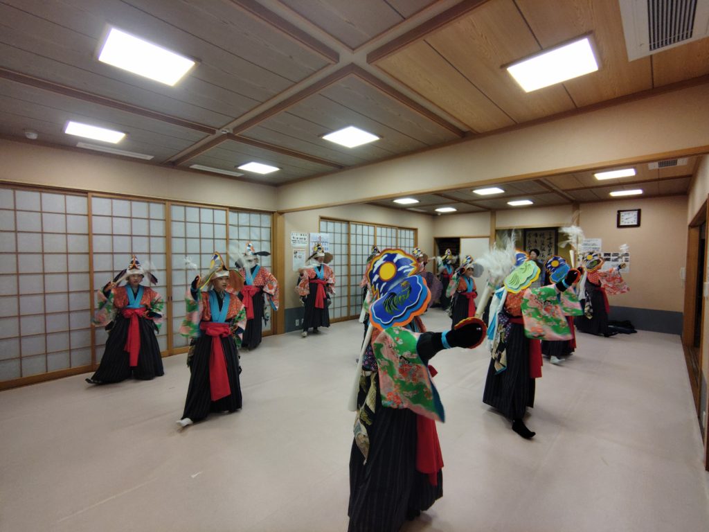 そこで昨年度から、地域の「宝」である鶏舞の継承を支援している 中里まちづくり協議会 地域・環境の保全プロジェクトチームでは3月に鶏舞着付け練習会を開催しており、今年度も3月の毎週金曜日に実施されました。